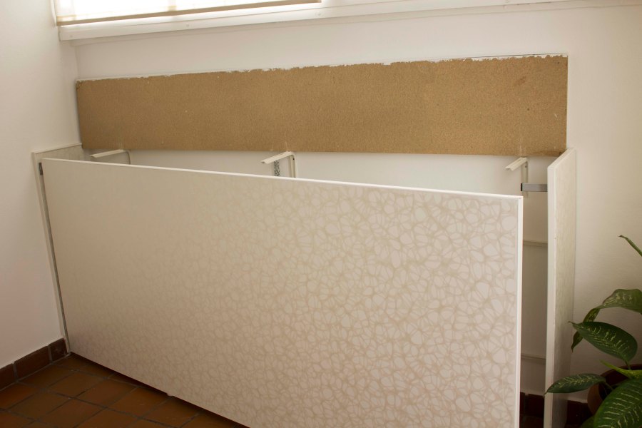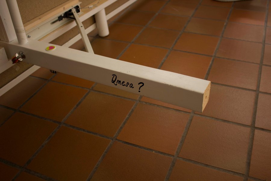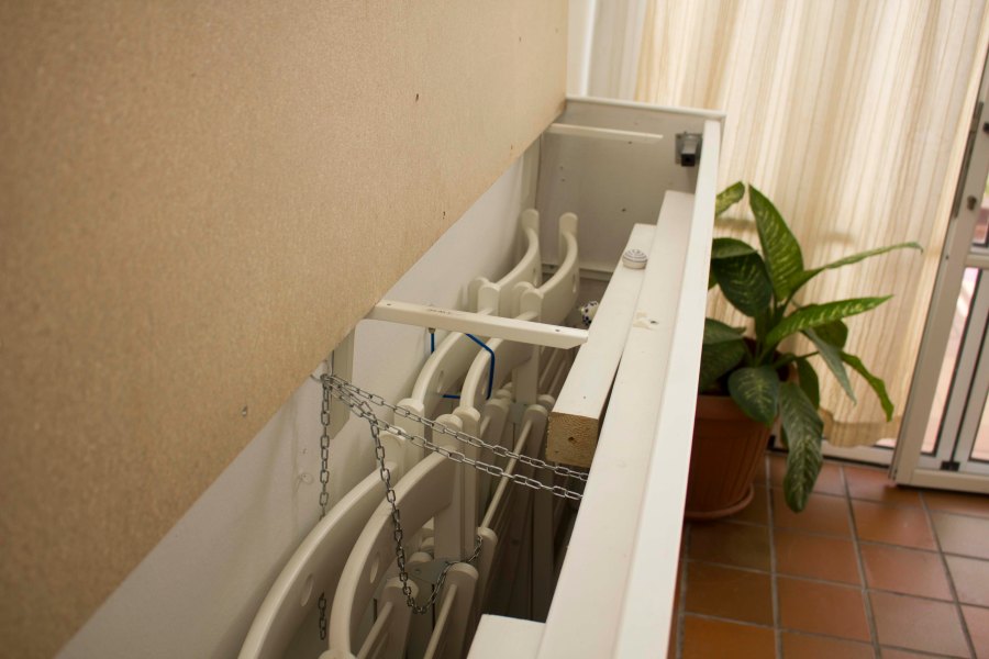 Para tener una mesa amplia en un espacio reducido, QMESA?, se esconde y hasta guarda en su interior las sillas.